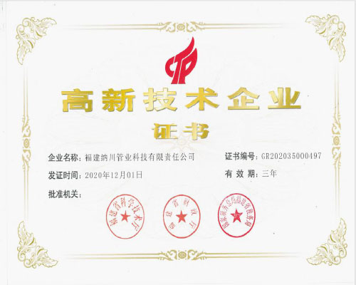 2016年納川作為海南文昌航天發(fā)射場(chǎng)主要的管材提供商,被授予“海南文昌航天發(fā)射場(chǎng)建設(shè)貢獻(xiàn)獎(jiǎng)”。2016年投資建設(shè)龍巖市四個(gè)縣(區(qū))鄉(xiāng)鎮(zhèn)污水處理廠網(wǎng)一體化PPP項(xiàng)目入選國(guó)家第三批PPP示范項(xiàng)目庫(kù)及被評(píng)為十大典型案例。2019年1月,納川研發(fā)出適合深海鋪設(shè)的3.3米超大口徑HDPE塑料管并成功安裝。2019年6月,納川股份旗下子公司上海納川取得美國(guó)ASME協(xié)會(huì)核3級(jí)授權(quán)證書(NPT),成為全球首家獲得此項(xiàng)許可的HDPE管道生產(chǎn)企業(yè)。2020年,納川股份榮獲長(zhǎng)江生態(tài)環(huán)保產(chǎn)業(yè)聯(lián)盟頒發(fā)的年度“優(yōu)秀成員單位”。